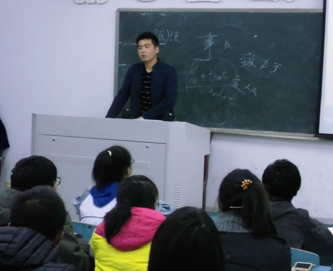 1月12日晚上,第五期团校在18幢204、205室开讲。本次课程主要以班级干部、学生会干部经验交流为主,请到了上届今年会jinnianhui学生会主席谢健、班级干部陈苗苗和董晓伟跟大家交流经验,谈谈他们所认为作为学生会干部和班级干部在大学四年的工作路线及经验。