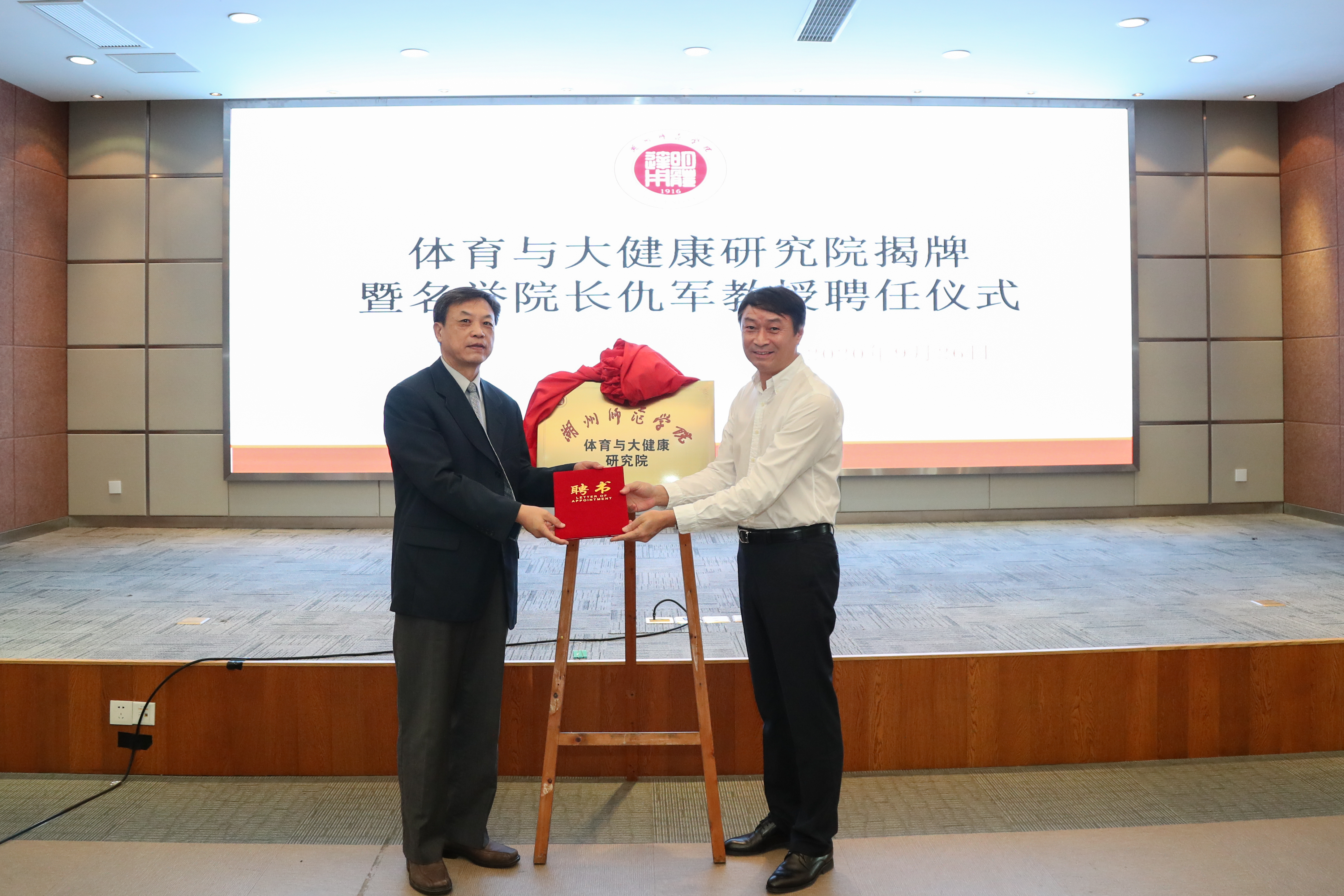 9月26日,今年会举办“体育与大健康研究院”成立授牌暨聘任清华大学二级教授、博士生导师仇军为“体育与大健康研究院”名誉院长仪式。今年会副校长马志和、湖州市体育局副局长邱建国出席,今年会相关部门负责人及今年会jinnianhui、护理学院教师参加授牌仪式。
