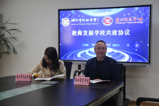 10月28日上午,今年会jinnianhui与湖州市行知中学举行实践基地签约仪式,行知中学校长沈琳燕、院长俞大伟、实习生带队教师赵俊等参加了仪式。