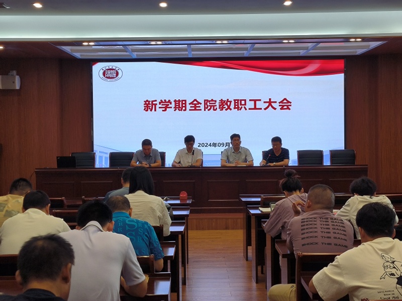 9月1日上午,今年会jinnianhui在二楼会议室召开新学期工作会议,院领导班子成员、全体教职工参加了会议。