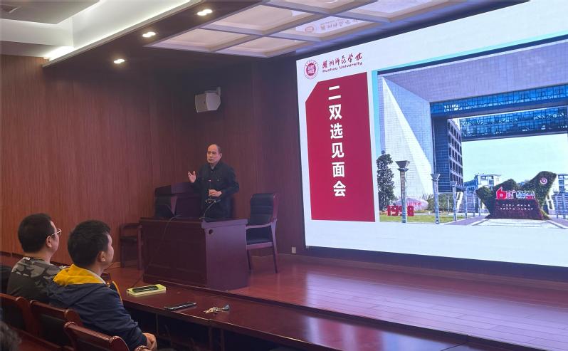 据悉,本次会议共分为两个阶段。首先,刘院长在第一阶段的导师工作会上对硕士学位论文开题工作和研究生修读本科阶段课程的管理规定等文件进行了政策解读,同时结合年度考核结果介绍了2024年导师招生资格审核与分配办法。会议的第二阶段为“师生双选”见面会。会上,刘院长首先介绍了“师生双选”的基本原则和主要流程。紧接着,导师们结合自身教育经历、研究方向、主要成果和指导学生具体要求等几方面依次发言。