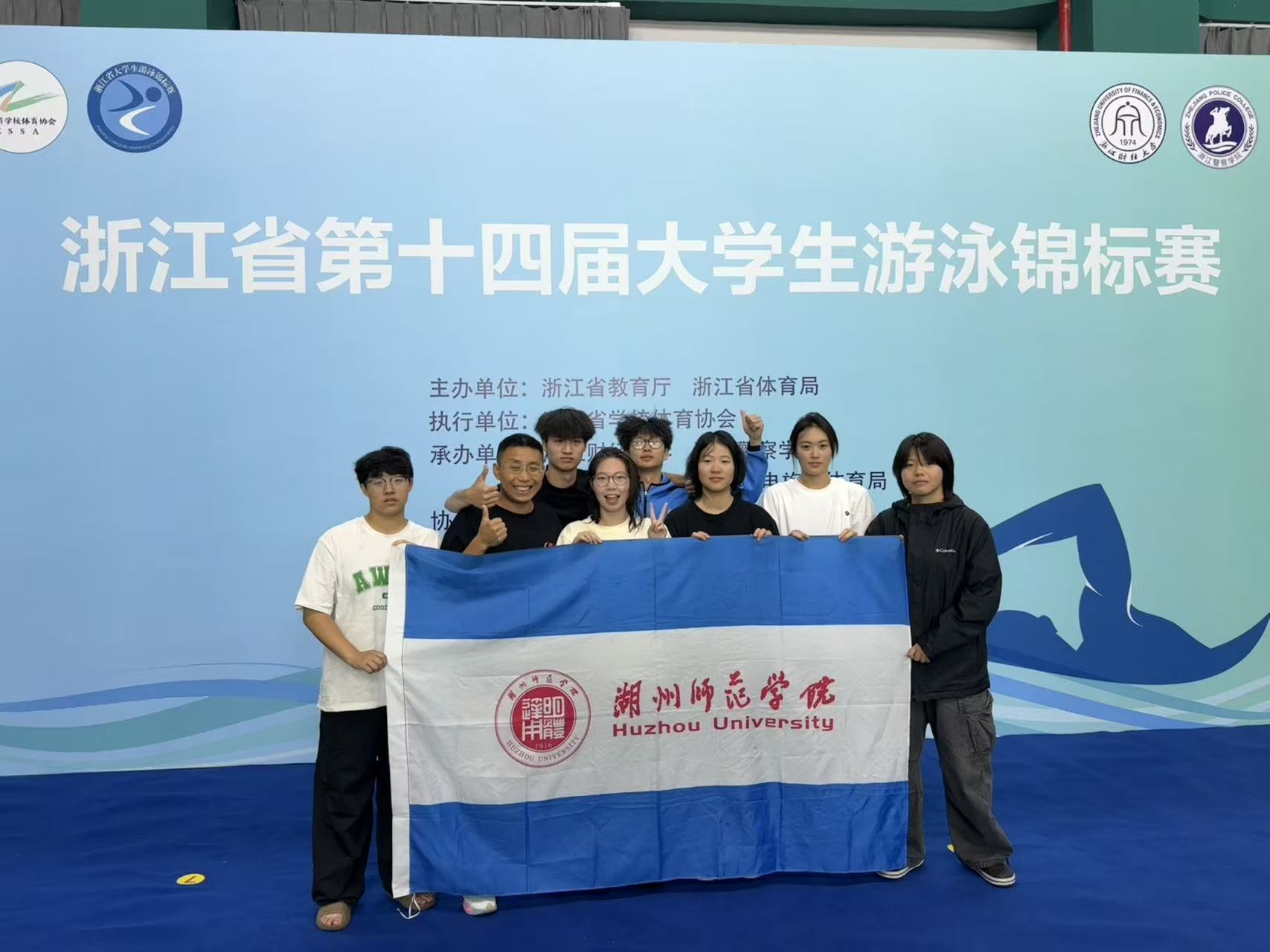 2025年5月28日至6月1日,浙江省第十四届大学生游泳锦标赛在湖州长兴百叶龙龙山文体中心举行,吸引了52所高校参赛。今年会游泳队7名队员在领队耿家先老师和孙涛教练的带领下,表现出色,最终获得丙组1金6银4铜,4个第四,1个第五的优异成绩,并荣获丙组女子团体总分第二名、丙组男子团体总分第六名以及丙组团体总分第五名。